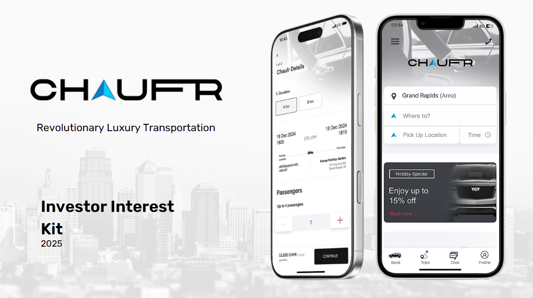 “Chaufr Technologies is pioneering the next evolution of luxury rideshare. Our platform allows riders to book premium transportation instantly, while empowering drivers with fairer pay and ownership opportunities through blockchain utility.”